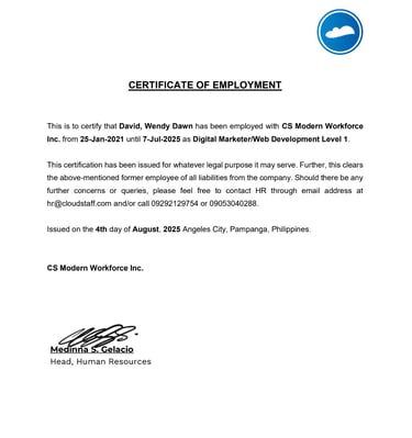 My COE. A few websites I've crafted for clients. I worked in a BPO where I dealt with multiple clients (the websites are too many to mention because the BPO clients also have their own clients). Below are websites I made as a freelancer.